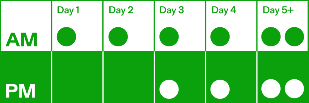 Day 5+:2 capsules twice daily (max 4 capsules/day)